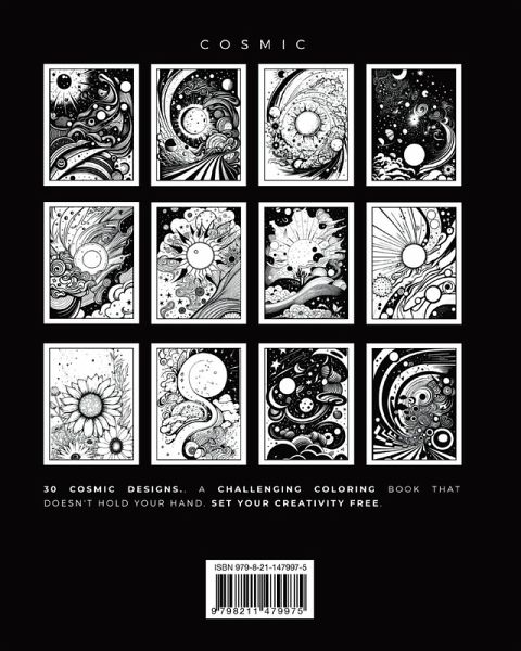 Introducing our COSMIC coloring book, featuring 30 original designs! Immerse yourself in hours of creative fun with this beautifully crafted collection. Single sided pages to prevent bleed through. Order now and get ready for a journey of creativity and self-expression.