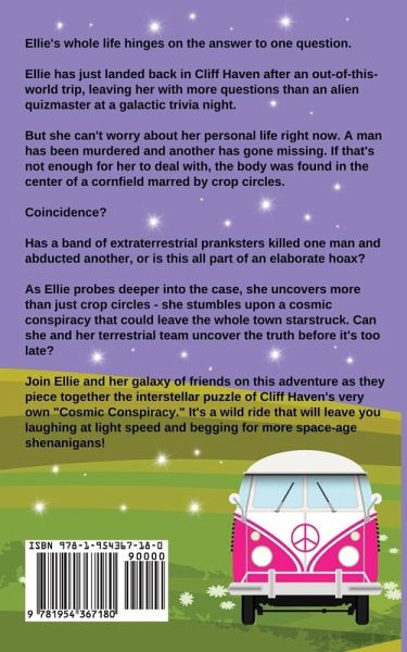 Ellie's whole life hinges on the answer to one question. Ellie has just landed back in Cliff Haven after an out-of-this-world trip, leaving her with more questions than an alien quizmaster at a galactic trivia night. But she can't worry about her personal life right now. A man has been murdered and another has gone missing. If that's not enough for her to deal with, the body was found in the center of a cornfield marred by crop circles. Coincidence? Has a band of extraterrestrial pranksters killed one man and abducted another, or is this all part of an elaborate hoax? As Ellie probes deeper into the case, she uncovers more than just crop circles - she stumbles upon a cosmic conspiracy that could leave the whole town starstruck. Can she and her terrestrial team uncover the truth before it's too late? Join Ellie and her galaxy of friends on this adventure as they piece together the interstellar puzzle of Cliff Haven's very own "Cosmic Conspiracy." It's a wild ride that will leave you laughing at light speed and begging for more space-age shenanigans!