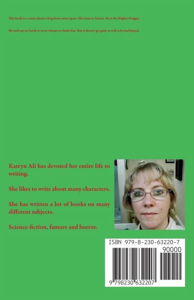 This book is a comic about a frog from outer-space. His name is Xenias. He is the Mighty Frogger. The frogger people love to sit on their lilie pads and sing. But Xenias is known to get a bit into trouble. Find out why he is banned from his home planet, Xsis. He ends up on Earth to serve whomever finds him. But it doesn't go quite as well as he had hoped. He finds himself in quite a drama trying to please twins who want everything once they learn of the powers this little frog possesses. Xenias and the twins must learn what true friendship is all about...