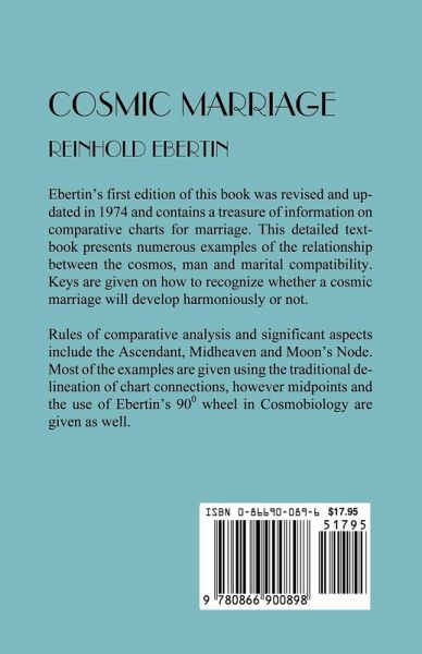 Reinhold Ebertin's first edition of this book was revised and updated in 1974 and contains a treasure of information on comparative charts for marriage. This detailed textbook presents numerous examples of the relationship between the cosmos, man and marital compatibility. Keys are given on how to recognize whether a cosmic marriage will develop harmoniously or not. Rules of comparative analysis and significant aspects include the Ascendant, Midheaven and Moon's Node. Most of the examples are given using the traditional delineation of chart connections, however midpoints and the use of Ebertin's 90 degree wheel in Cosmobiology are given as well.