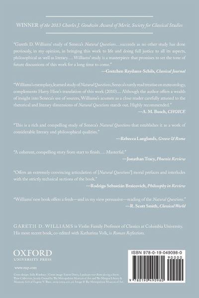 Seneca's Natural Questions is an eight-book disquisition on the nature of meteorological phenomena, ranging inter alia from rainbows to earthquakes, from comets to the winds, from the causes of snow and hail to the reasons why the Nile floods in summer. Much of this material had been treated in the earlier Greco-Roman meteorological tradition, but what notoriously sets Seneca's writing apart is his insertion of extended moralizing sections within his technical discourse. How, if at all, are these outbursts against the luxury and vice that are apparently rampant in Seneca's first-century CE Rome to be reconciled with his main meteorological agenda?