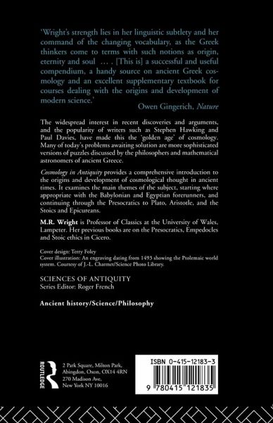 `Wright's strength lies in her linguistic subtlety and her command of the changing vocabulary ... a successful and useful compendium, a handy source on ancient Greek cosmology and an excellent supplementary textbook for courses dealing with the origins and development of modern science.' - ?