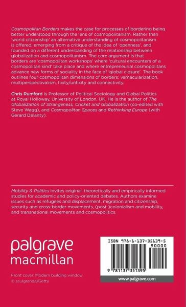 Cosmopolitan Borders makes the case for processes of bordering being better understood through the lens of cosmopolitanism. Borders are 'cosmopolitan workshops' where 'cultural encounters of a cosmopolitan kind' take place and where entrepreneurial cosmopolitans advance new forms of sociality in the face of 'global closure'.