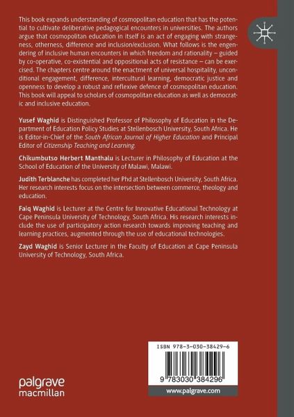 This book expands understanding of cosmopolitan education that has the potentialto cultivate deliberative pedagogical encounters in universities. The authorsargue that cosmopolitan education in itself is an act of engaging with strangeness,otherness, difference and inclusion/exclusion. What follows is the engenderingof inclusive human encounters in which freedom and rationality - guidedby co-operative, co-existential and oppositional acts of resistance - can be exercised.The chapters centre around the enactment of universal hospitality, unconditionalengagement, difference, intercultural learning, democratic justice andopenness to develop a robust and reflexive defence of cosmopolitan education.This book will appeal to scholars of cosmopolitan education as well as democraticand inclusive education.