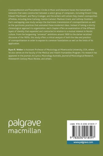 Cosmopolitanism and Transatlantic Circles in Music and Literature traces the transatlantic networks that were constructed between a select group of composers, including Edvard Grieg, Edward MacDowell, and Percy Grainger, and the writers with whom they shared cosmopolitan affinities, including Arne Garborg, Hamlin Garland, Madison Grant, and Lathrop Stoddard. Each overlapping case study surveys the diachronic transmission of cosmopolitanism as well as the synchronic practices that animated these modernist ideas. Instead of taking a strictly chronological approach to organization, each chapter offers an examination of the different layers of identity that expanded and contracted in relation to a mutual interest in Nordic culture. From the burgeoning "universal" ambitions around 1900 to the darker racialized discourse of the 1920s, this study offers a critical analysis of both the idea and practice of cosmopolitanism in order to expose its common foundations as well as the limits of its application.