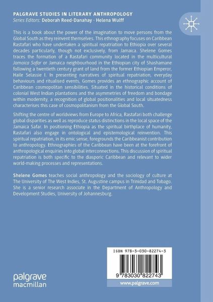 This is a book about the power of the imagination to move persons from the Global South as they reinvent themselves. This ethnography focuses on Caribbean Rastafari who have undertaken a spiritual repatriation to Ethiopia over several decades particularly, though not exclusively, from Jamaica. Shelene Gomes traces the formation of a Rastafari community located in the multicultural Jamaica Safar or Jamaica neighbourhood in the Ethiopian city of Shashamane following a twentieth century grant of land from the former Ethiopian Emperor, Haile Selassie I. In presenting narratives of spiritual repatriation, everyday behaviours and ritualised events, Gomes provides an ethnographic account of Caribbean cosmopolitan sensibilities. Situated in the historical conditions of colonial West Indian plantations and the asymmetries of freedom and bondage within modernity, a recognition of global positionalities and local situatedness characterises this case of cosmopolitanism from the Global South.