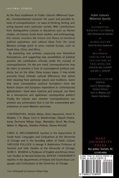 Carol A. Breckenridge teaches at the in the department of South Asian languages and civilizations at the University of Chicago and is the founding editor of Public Culture. Sheldon Pollock is George V. Bobrinskoy Professor of Sanskrit and Indic Studies at the University of Chicago. Homi K. Bhabha is Professor of English and African-American Studies at Harvard University. Dipesh Chakrabarty teaches in the departments of history and South Asian languages and civilizations at the University of Chicago. Sheldon Pollock is the The William B. Ransford Professor of Sanskrit and Indian Studies in the Department of Middle East and Asian Languages and Cultures at Columbia University. He is the author of The language of the gods in the world of men : Sanskrit, culture, and power in premodern India (2006) and editor of a number of books, including LITERARY CULTURES IN HISTORY: RECONSTRUCTIONS FROM SOUTH ASIA (2003) and (w/Homi Bhabha, Carol Breckenridge, and Dipesh Chakrabarty) COSMOPOLITANISM (Duke, 2002).