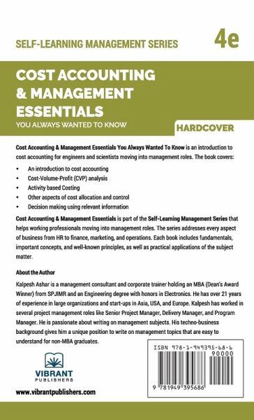 Comes with Chapter Summaries and Solutions to Practice Exercise Fundamentals and important principles included Practical approach for application by business professionals Solved examples with real-life business scenarios Cost Accounting & Management Essentials You Always Wanted To Know: 4th Edition is an introduction to cost accounting for engineers and scientists moving into management roles. It is structured in a compact and easy-to-understand format so that beginners to the subject will gain an understanding of cost accounting and managerial accounting. The book covers: An introduction to cost accounting Cost-Volume-Profit (CVP) analysis Activity based Costing Cost management Other aspects of cost allocation and control Decision-making using relevant information About the Series The Self-Learning Management series is designed to help students, new managers, career switchers and entrepreneurs learn essential management lessons. This series has management books, finance and accounting books, and strategy and marketing books designed to address every aspect of business from HR to Finance to Marketing to Operations. Each book includes basic fundamentals, important concepts, standard and well-known principles as well as practical ways of application of the subject matter. The distinctiveness of the series lies in that all the relevant information is bundled in a compact form that is very easy to interpret.