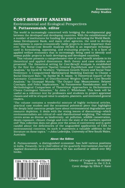 The world is increasingly concerned with bridging the developmental gap between the developed and developing countries. With the establishment of a number of institutions for funding the projects including the World Bank, Asian Development Bank, and many other agencies, the need to develop mechanisms to assess economically viable projects is more important than ever. The Social-Cost Benefit Analysis (SCBA) is an important technique used in formulating, appraising, and evaluating projects. It is a facet of applied welfare economics which is increasingly being used to identify and assess public projects in both developing and developed countries. This volume presents a comprehensive view of cost-benefit analysis in its theoretical and applied dimensions. Both theory and case studies are presented. The theoretical setting for Cost-Benefit Analysis is established by the first five chapters-"Spatial General Equilibrium and Cost-Benefit Analysis," by David M. Newbery; "Optimum Growth Theory and Social Time Preference: A Computerized Mathematical Modeling Exercise to Choose a Social Discount Rate," by Sardar M. N. Islam; "A Theoretical Inquiry of the Axiomatic Consistency of Distributional Weights used in Cost-Benefit Analysis," by Giuseppe Munda; "The Output Gap: Measurement, Related Concepts, and Policy Implications," by Parameswar Nandakumar; and "A Methodological Comparison of Theoretical Approaches in Dichotomous Choice Contingent Valuation," by John C. Whitehead. This book will be useful as a reference text by professors and students in project appraisal classes and will be of equal value to analysts, planners, and interested general readers.