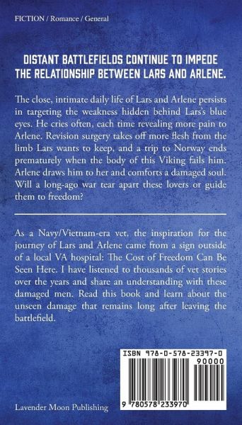 The close, intimate daily life of Lars and Arlene persists in targeting the weakness hidden behind Lars's blue eyes. He cries often, each time revealing more pain to Arlene. Revision surgery takes off more flesh from the limb Lars wants to keep, and a trip to Norway ends prematurely when the body of this Viking fails him. Arlene draws him to her and comforts a damaged soul. Will a long-ago war tear apart these lovers or guide them to freedom?