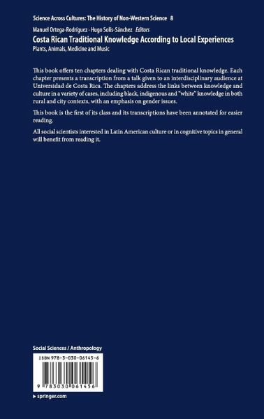 This book offers ten chapters dealing with Costa Rican traditional knowledge. Each chapter presents a transcription from a talk given to an interdisciplinary audience at Universidad de Costa Rica. The chapters address the links between knowledge and culture in a variety of cases, including black, indigenous and "white" knowledge in both rural and city contexts, with an emphasis on gender issues.