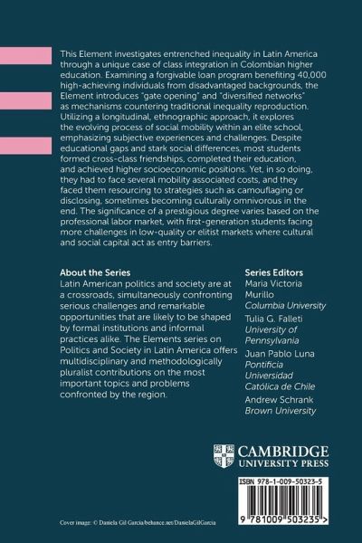 This Element investigates inequality in Latin America through a unique case of class integration in Colombian higher education. It introduces 'gate opening' and 'diversified networks' as mechanisms countering traditional inequality reproduction. It explores social mobility within an elite school, emphasizing subjective experiences and challenges.