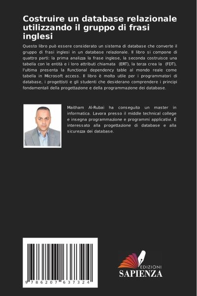 Questo libro può essere considerato un sistema di database che converte il gruppo di frasi inglesi in un database relazionale. Il libro si compone di quattro parti: la prima analizza la frase inglese, la seconda costruisce una tabella con le entità e i loro attributi chiamata (ERT), la terza crea la (FDT), l'ultima presenta la Functional dependency table al mondo reale come tabella in Microsoft access. Il libro è molto utile per i programmatori di database, i progettisti e gli studenti che desiderano comprendere i principi fondamentali della progettazione e della programmazione dei database.