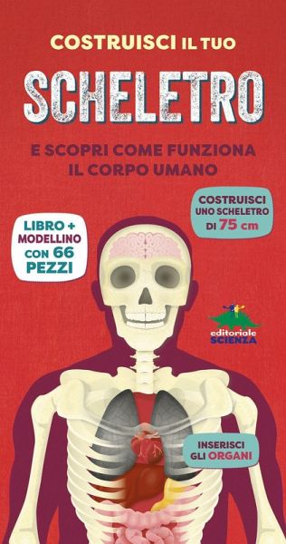 Un libro che ti guida alla scoperta del corpo umano, con allegato un modellino di 75 cm da costruire. Il corpo è una macchina meravigliosa costituita da tante parti diverse. Scopri la struttura ossea, come lavorano i muscoli, quali sono le difese del corpo, il modo in cui il cervello invia messaggi agli arti e tanto altro ancora. E quale modo migliore per capire come sei fatto se non costruire il tuo scheletro? Per assemblare il modellino allegato devi semplicemente incastrare i 66 pezzi che lo compongono, senza colla né nastro adesivo! Età di lettura: da 8 anni.