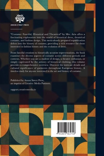 "Costume: Fanciful, Historical and Theatrical" by Mrs. Aria offers a fascinating exploration into the world of historical dress, theatrical costume, and fashion design. This meticulously prepared republication delves into the history of costume, providing a rich resource for those interested in fashion history and the evolution of dress. From fanciful creations to historically accurate representations, the book examines the diverse aspects of costume across different periods and contexts. Whether you are a student of design, a theater enthusiast, or simply captivated by the artistry of…mehr
