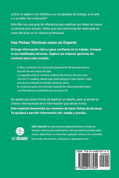 Costuras para Fichas TécnicasGuía Visual para Producción de Indumentaria ¿Qué información lleva una Ficha Técnica y cómo debo explicar mis diseños para que sean desarrollados en un taller textil? Costuras para Fichas Técnicas es un libro de referencia que se centra en los aspectos técnicos del diseño de moda e indumentaria. Esta herramienta te permitirá no solo comprender cómo se hacen las prendas, sino que también enriquecerá tu creatividad como diseñador. Las 27 prendas que se desarrollan en este libro son la base para explicar casi cualquier modelo. Te mostramos en detalle cómo se hace cada prenda y cómo explicarla claramente a una fábrica. Ahorrará tiempo y evitará malentendidos. Usando este material al hacer tus fichas iras directo al grano. Evitarás esos errores comunes pero costosos, y ganarás confianza en ti mismo. Diseña como un profesionalElige las costuras más apropiadas para cualquier proyecto y domina los problemas técnicos relacionados con el desarrollo de productos textiles.