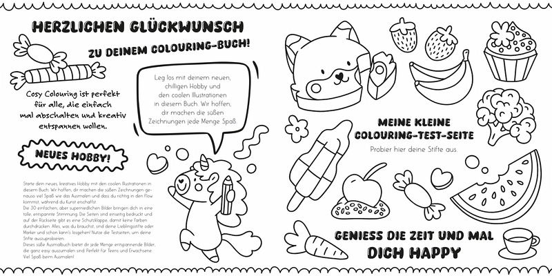 Einseitig bedruckte Seiten, die ein sauberes Malen ermöglichen und das Durchschlagen der Farben verhindern.Kawaii und Cosy Style - Ideal für Fans dieser beliebten Ästhetik, die eine Vorliebe für Süße haben.Perfekt als Geschenk für Naschkatzen und eine einfache Entspannungsmethode für Mädchen und junge Frauen, die Kreativität und Erholung miteinander kombinieren möchten.Erleben Sie entspannende Momente und entfalten Sie Ihre Kreativität mit"Süße Foodies" - das ideale Ausmalbuch, das sowohl als persönliche Auszeit als auch als liebevolles Geschenk Freude bereitet! Tauchen Sie ein in die bunte Welt der Cosy Colouring und lassen Sie Ihrer Fantasie freien Lauf!