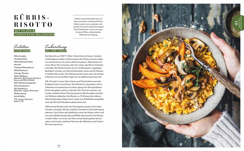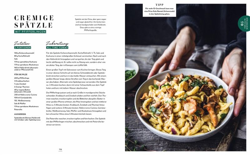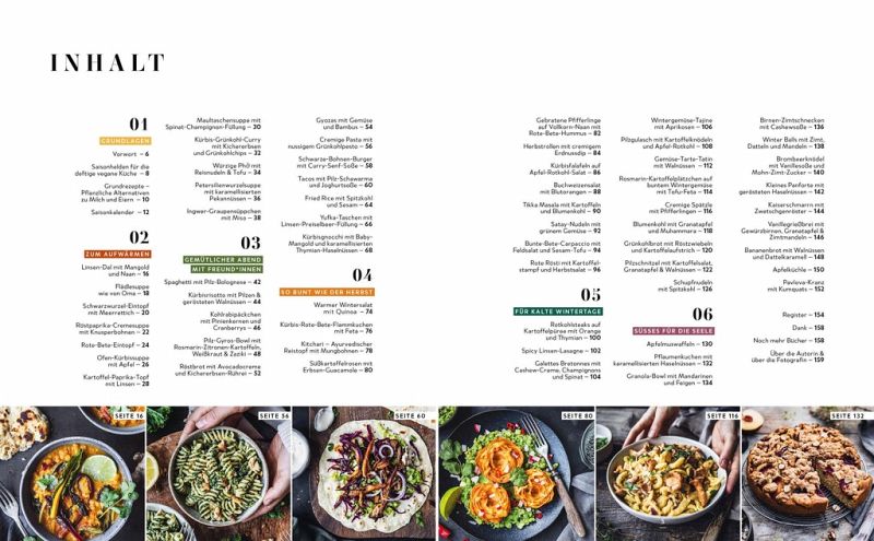 Entdecke vegane Küche von einer ganz neuen, deftigen Seite und schlemme dich mit saisonalem Gemüse und Obst wie Kürbis, Rote Bete, Äpfeln, Kohl, Pilzen, Orangen und so viel mehr durch den Herbst, die Adventszeit und die kalten Wintermonate. Schlürfe ein wärmendes Ingwer-Graupen-Süppchen, genieße farbenfrohe Rotkohlsteaks auf Kartoffelpüree oder ein würziges Tikka Masala mit Kartoffeln und Blumenkohl, oder verwöhne dich und deine Liebsten mit fluffigen Birnen-Zimtschecken mit Cashewcreme. Dem veganen Genuss sind von nun an keine Grenzen mehr gesetzt. Das ist echte Wohlfühlküche, die schmeckt!