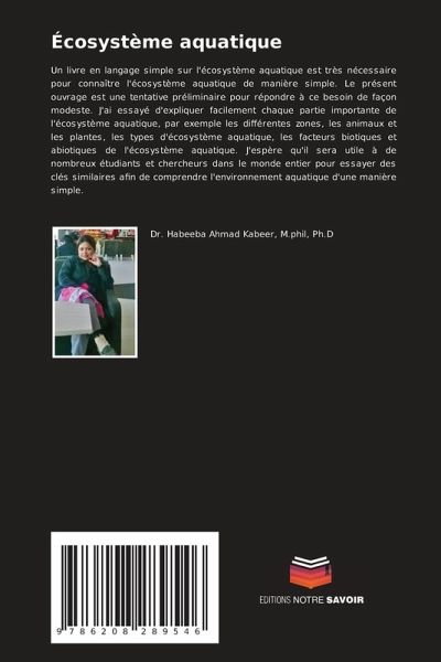 Un livre en langage simple sur l'écosystème aquatique est très nécessaire pour connaître l'écosystème aquatique de manière simple. Le présent ouvrage est une tentative préliminaire pour répondre à ce besoin de façon modeste. J'ai essayé d'expliquer facilement chaque partie importante de l'écosystème aquatique, par exemple les différentes zones, les animaux et les plantes, les types d'écosystème aquatique, les facteurs biotiques et abiotiques de l'écosystème aquatique. J'espère qu'il sera utile à de nombreux étudiants et chercheurs dans le monde entier pour essayer des clés similaires afin de comprendre l'environnement aquatique d'une manière simple.