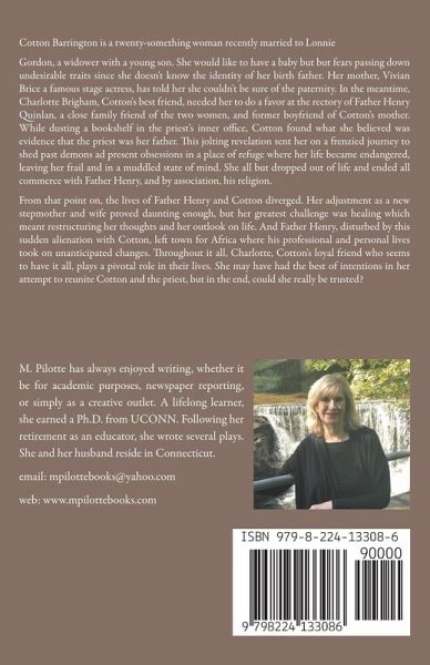 Cotton Barrington is a twenty-something woman recently married to Lonnie Gordon, a widower with a young son. She would like to have a baby but but fears passing down undesirable traits since she doesn't know the identity of her birth father. Her mother, Vivian Brice a famous stage actress, has told her she couldn't be sure of the paternity. In the meantime, Charlotte Brigham, Cotton's best friend, needed her to do a favor at the rectory of Father Henry Quinlan, a close family friend of the two women, and former boyfriend of Cotton's mother. While dusting a bookshelf in the priest's inner office, Cotton found what she believed was evidence that the priest was her father. This jolting revelation sent her on a frenzied journey to shed past demons ad present obsessions in a place of refuge where her life became endangered, leaving her frail and in a muddled state of mind. She all but dropped out of life and ended all commerce with Father Henry, and by association, his religion. From that point on, the lives of Father Henry and Cotton diverged. Her adjustment as a new stepmother and wife proved daunting enough, but her greatest challenge was healing which meant restructuring her thoughts and her outlook on life. And Father Henry, disturbed by this sudden alienation with Cotton, left town for Africa where his professional and personal lives took on unanticipated changes. Throughout it all, Charlotte, Cotton's loyal friend who seems to have it all, plays a pivotal role in their lives. She may have had the best of intentions in her attempt to reunite Cotton and the priest, but in the end, could she really be trusted?