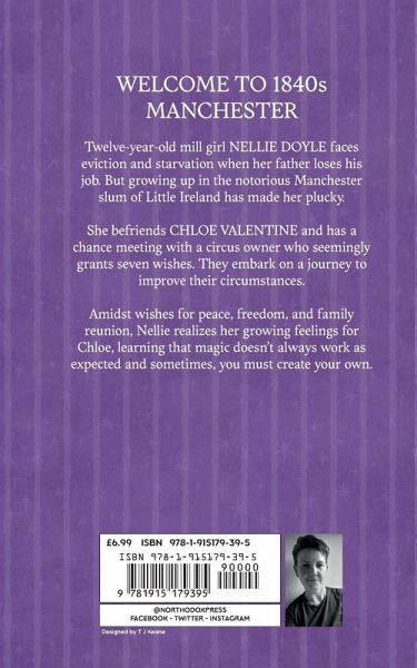 Welcome to 1840s Manchester Twelve-year-old mill girl NELLIE DOYLE faces eviction and starvation when her father loses his job. But growing up in the notorious Manchester slum of Little Ireland has made her plucky. She befriends CHLOE VALENTINE and has a chance meeting with a circus owner who seemingly grants seven wishes. They embark on a journey to improve their circumstances. Amidst wishes for peace, freedom, and family reunion, Nellie realizes her growing feelings for Chloe, learning that magic doesn't always work as expected and sometimes, you must create your own. Suitable for children 8 years and about, topics include LGBTQ+ identity, poverty, disability, and racism.