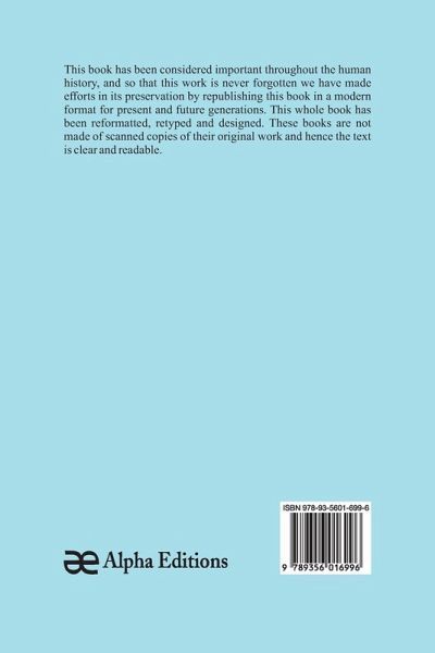 This book has been considered important throughout the human history, and so that this work is never forgotten we have made efforts in its preservation by republishing this book in a modern format for present and future generations. This whole book has been reformatted, retyped and designed. These books are not made of scanned copies and hence the text is clear and readable.