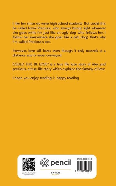 I like her since we were high school students. But could this be called love? Precious, who always brings light wherever she goes while I'm just like an ugly dog ¿¿who follows her. I follow her everywhere she goes like a pet( dog), that's why I'm called Precious's pet. However, love still loves even though it only marvels at a distance and is never conveyed. COULD THIS BE LOVE? is a true life love story of Alex and precious, a true-life story which explains the fantasy of love I hope you enjoy reading it, happy reading