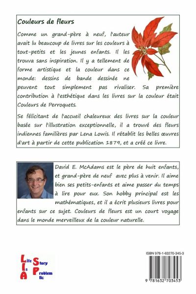 En tant que grand-père de quinze enfants, j'ai lu de nombreux livres sur les noms de couleurs aux tout-petits et aux jeunes enfants. Je les ai trouvés peu inspirés. Il y a tellement de belles formes et de belles couleurs dans ce monde : les dessins animés ne peuvent tout simplement pas rivaliser. Ma première contribution à l'esthétique des livres sur les noms de couleurs a été Couleurs de Perroquets. Satisfait de l'accueil chaleureux réservé aux livres sur la couleur basés sur des illustrations exceptionnelles, j'ai découvert Familiar Indian Flowers de Lena Lowis. J'ai restauré numériquement les belles illustrations de cette publication de 1879 et créé ce livre