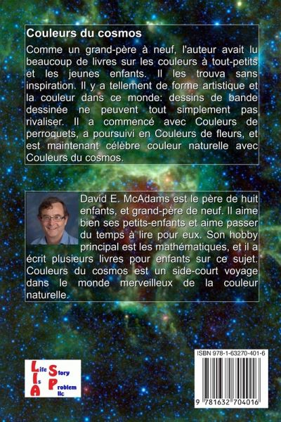 Grand-père de quinze enfants, l'auteur avait lu beaucoup de livres sur les couleurs à tout-petits et les jeunes enfants. Il les trouva sans inspiration. Il y a tellement de forme artistique et la couleur dans ce monde: dessins de bande dessinée ne peuvent tout simplement pas rivaliser. Il a commencé avec Couleurs de perroquets, a poursuivi en Couleurs de fleurs, et est maintenant célèbre couleur naturelle avec Couleurs du cosmos.