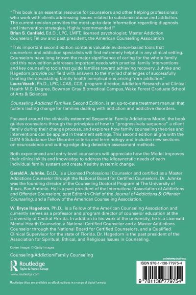 Counseling Addicted Families, Second Edition, is an up-to-date treatment manual that fosters lasting change for families dealing with addiction and addictive disorders. Focused around the clinically esteemed Sequential Family Addictions Model, the book guides counselors through the principles of how to "progressively sequence" a client family during their change process, and explores how family counseling theories and interventions can be applied in treatment settings. This second edition aligns with the DSM-5 Substance Use Disorder criteria and terminology and includes new sections on neuroscience and cutting-edge drug detection assessment methods. Both experienced and entry-level counselors will appreciate how the Model improves their clinical skills and knowledge to address the idiosyncratic needs of each individual family system and create healthy systemic change.