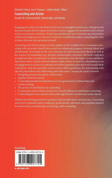 Counseling and Action couples a timely update on the multiple roles of action in counseling with an action-based framework for enhancing progress between client and professional. Grounded in the core concepts of contextual action theory as well as key aspects of counseling (e.g., identity, intentionality, emotion), the book explicates an approach that is responsive to client complexities and the larger social conditions that frame them. Expert-penned chapters apply theory to practice, illustrating levels of engagement in action as counselor and client negotiate goals and work toward their realization. And an especially useful section offers guidelines for intervening with specific populations and addressing particular issues. Among the topics covered: