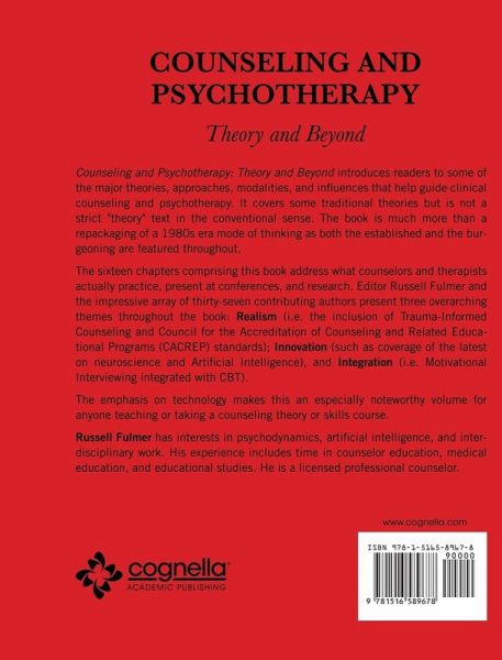 Counseling and Psychotherapy: Theory and Beyond introduces readers to some of the major theories, approaches, modalities, and influences that help guide clinical counseling and psychotherapy. It covers some traditional theories but is not a strict "theory" text in the conventional sense. The book is much more than a repackaging of a 1980s era mode of thinking as both the established and the burgeoning are featured throughout. The sixteen chapters comprising this book address what counselors and therapists actually practice, present at conferences, and research. Editor Russell Fulmer and the impressive array of thirty-seven contributing authors present three overarching themes throughout the book: Realism (i.e. the inclusion of Trauma-Informed Counseling and Council for the Accreditation of Counseling and Related Educational Programs (CACREP) standards); Innovation (such as coverage of the latest on neuroscience and Artificial Intelligence), and Integration (i.e. Motivational Interviewing integrated with CBT). The emphasis on technology makes this an especially noteworthy volume for anyone teaching or taking a counseling theory or skills course.
