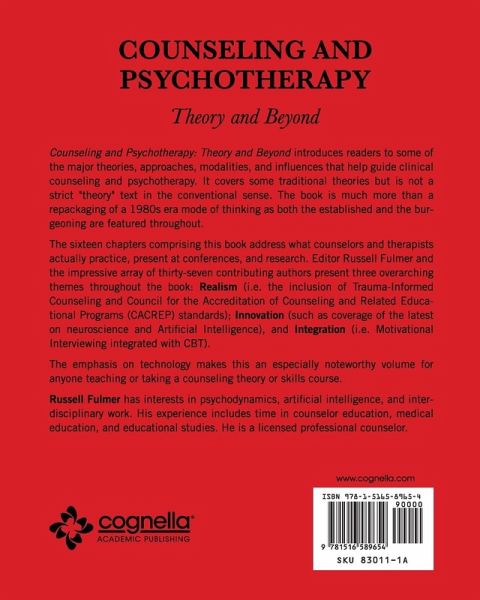 Counseling and Psychotherapy: Theory and Beyond introduces readers to some of the major theories, approaches, modalities, and influences that help guide clinical counseling and psychotherapy. It covers some traditional theories but is not a strict "theory" text in the conventional sense. The book is much more than a repackaging of a 1980s era mode of thinking as both the established and the burgeoning are featured throughout. The sixteen chapters comprising this book address what counselors and therapists actually practice, present at conferences, and research. Editor Russell Fulmer and the impressive array of thirty-seven contributing authors present three overarching themes throughout the book: Realism (i.e. the inclusion of Trauma-Informed Counseling and Council for the Accreditation of Counseling and Related Educational Programs (CACREP) standards); Innovation (such as coverage of the latest on neuroscience and Artificial Intelligence), and Integration (i.e. Motivational Interviewing integrated with CBT). The emphasis on technology makes this an especially noteworthy volume for anyone teaching or taking a counseling theory or skills course.