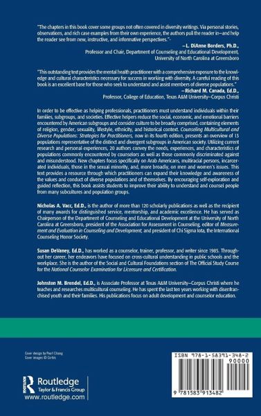 The purpose of this book is to expose students of the helping professions, counselors, teachers, college professors, mental health workers, and social workers to the unique characteristics of representative American subgroups and to effectively assist these same professionals as they work with clients and/or students from these populations. These are grouped by race, gender, sexuality, age, physical limitations and lifestyle etc. The author of each chapter is both a trained helping professional and a member of the group in question. This unique combination of qualifications lends both an academic and a personal perspective to the understanding of the populations represented.