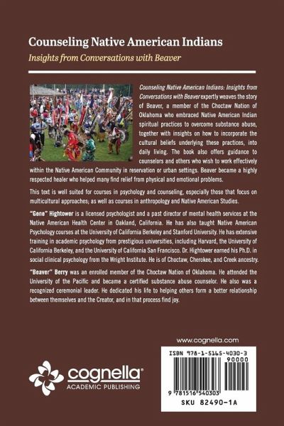 Counseling Native American Indians: Insights from Conversations with Beaver expertly weaves the story of Beaver, a member of the Choctaw Nation of Oklahoma who embraced Native American Indian spiritual practices to overcome substance abuse, together with insights on how to incorporate the cultural beliefs underlying these practices into daily living. The book also offers guidance to non-indigenous counselors and others who wish to work effectively within the Native American Community in reservation or urban settings. In opening chapters readers learn from Beaver's detailed account practical insights on Indian cultural values from growing up in a communal Choctaw community in Oklahoma. Subsequent chapters feature interviews with Beaver, which recount his experiences growing up in a loving Choctaw family that was led by a medicine man uncle, surviving abuse in an Indian boarding school, surviving combat in the Pacific during World War ll, and relocating into an urban Indian community where he started a substance abuse treatment program for Native American Indians. He recounts his evolution from substance abuser to a leader of traditional ceremonies such as the sweat lodge and vision quest. He became a highly respected healer who helped many find relief from physical and emotional problems, as recounted by other individuals in this book. The book also offers information on the structure of the modern day Native American Indian community and stresses the importance of modern day Indians adhering to traditional values. Counseling Native American Indians simultaneously shares the inspiring story of Beaver's life while providing valuable advice for counseling Native American populations. The text is well suited for courses in Native American Studies and psychology and counseling, especially those that focus on multicultural approaches. "Gene" Hightower is a licensed psychologist and a past director of mental health services at the Native American Health Center in Oakland, California. He has also taught Native American Psychology courses at the University of California Berkeley and Stanford University. He has extensive training in academic psychology from prestigious universities, including Harvard, the University of California Berkeley, and the University of California San Francisco. Dr. Hightower earned his Ph.D. in social clinical psychology from the Wright Institute. He is of Choctaw, Cherokee, and Creek ancestry. "Beaver" Berry was an enrolled member of the Choctaw Nation of Oklahoma. After overcoming his addiction to drugs and alcohol, Beaver attended the University of the Pacific and became a certified substance abuse counselor. He also became a recognized ceremonial leader. He dedicated his life to helping others find sobriety, form a better relationship between themselves and the Creator, and in that process find joy.