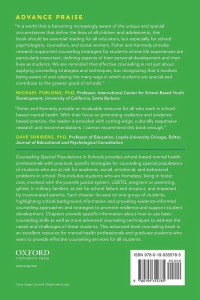 Counseling Special Populations in Schools provides school-based mental health professionals with practical, specific strategies for counseling special populations of students who are at risk for academic, social, emotional, and behavioral problems in school. These special populations include students who are homeless, living in foster care, involved with the juvenile justice system, LGBTQ, pregnant or parenting, gifted, in military families, at-risk for school failure and dropout, and impacted by incarcerated parents. Each chapter focuses on one group of students, highlighting critical background information and providing evidence-informed counseling approaches and strategies to promote resilience and support student development. Chapters provide specific information about how to use basic counseling skills, as well as more advanced counseling techniques such as Solution-Focused Brief Therapy, Cognitive Behavioral Therapy, and Motivational Interviewing, to address the needs and challenges of these special populations of students. This advanced-level counseling book is an excellent resource for mental health professionals and graduate students who want to be able to provide effective counseling services for all students.