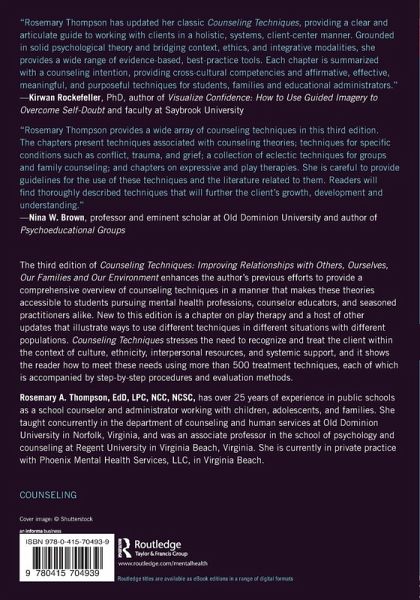 The third edition of Counseling Techniques follows in its predecessors' steps, presenting the art and science of counseling in a clear and common-sense manner that makes it accessible for counseling students and seasoned practitioners alike. New to this edition are chapters on play therapy and a host of other updates that illustrate ways to use different techniques in different situations. Counseling Techniques stresses the need to recognize and treat the client within the context of culture, ethnicity, interpersonal resources, and systemic support, and it shows students how to meet these needs using more than five hundred treatment techniques, each of which is accompanied by step-by-step procedures and evaluation methods.