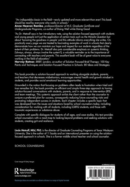 This book provides a solution-focused approach to working alongside students, parents, and teachers that decreases misbehaviors, encourages mental health and growth mindset in students, and provides social emotional learning opportunities.