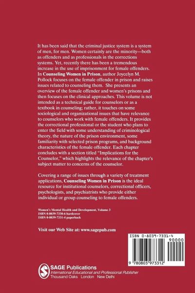 This volume presents a clear description of the problems of women offenders, a variety of treatment approaches and prospects for the future. Four chapters are devoted to the particular conditions of women's prisons, and the psychological effects on their inmates. The remaining chapters address clinical issues.