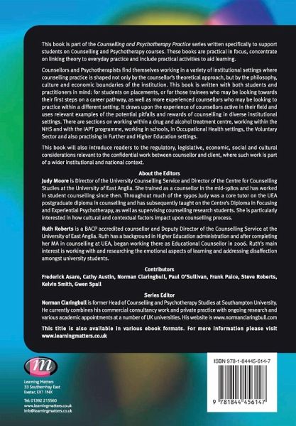 An introduction for undergraduate students to counselling and psychotherapy in different institutional settings.