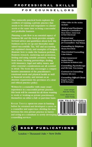 This practical book explores the conflicts of running a private practice that needs to be ethical and responsive to clients' needs at the same time as being a successful and profitable business. The author provides straightforward advice and guidelines about how a business can be set up and thereafter maintained successfully. Tax, VAT and accounting are explained clearly, and examples of budgets illustrate how to make the business perform. Business research, marketing and promotion, finding and using suitable premises, working from home, forming partnerships, dealing with insurance, legal and safety issues and other essential considerations are all covered in detail. The book also encourages a comprehensive assessment of the practitioner's emotional needs and physical health as well as financial security.