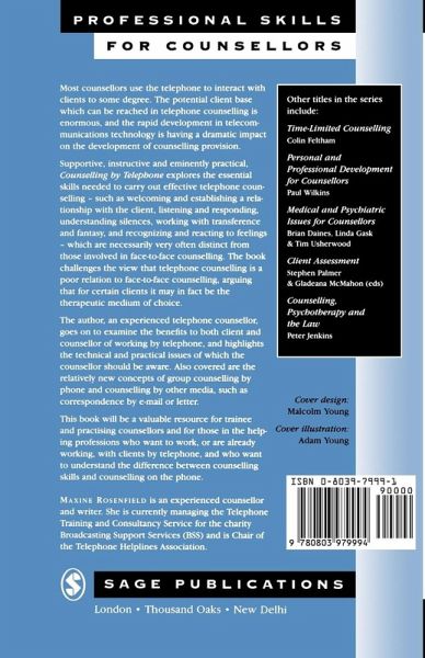 `Well written, well researched... [the book] contributes to undermining ideas of professional hierarchy, in which long-term face-to-face is top of the pile, and short-term and the phone are the province of the amateur who knows not what they are up to. On the contrary, the counselling process as well as the use of counselling skills are resources that can be much more widely used than is possible if they are restricted to relatively long-term counselling. This is an excellent book covering a great deal of recent thinking about confidentiality, skills, training, quality and supervision in relation to the telephone [with] a useful chapter on its technology in relation to counselling' - Counselling and Psychotherapy, The Journal of the British Association for Counselling and Psychotherapy `This book breaks new ground by focusing attention on the potential of the telephone as a medium for counselling. It acknowledges that many counsellors have been reluctant to embrace the potential of telephone counselling. Until recently, this reluctance has been endorsed by the counselling and therapeutic authorities. But the British Association for Counselling has now given telephone counselling recognition... The book [is] aimed at two potential groups of readers. First, it is a call for the counselling establishment to acknowledge that the forms of human communication available to counsellors are now many and varied, and that face-to-face contact is not always necessary, possible or appropriate... The second group of potential readers is individuals and agencies already committed to telephone counselling. The book will enable them to address issues of training, supervision, quality control and skills as well as theory... This is a valuable book that deserves to be read by those who are sceptical about telephone counselling as well as those who are convinced about its importance. Rosenfield has ensured through its publication that telephone counselling will be an unavoidable item on the agenda of counselling authorities' - British Journal of Guidance and Counselling