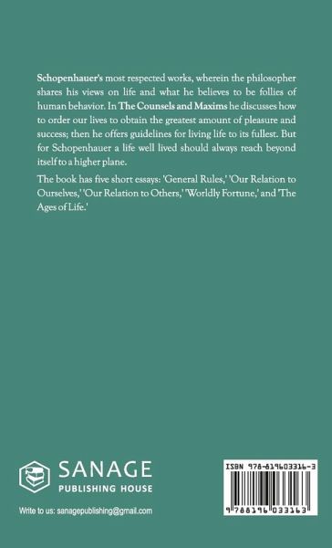 Arthur Schopenhauer's most respected works, wherein the philosopher shares his views on life and what he believes to be follies of human behavior. In The Counsels and Maxims he discusses how to order our lives to obtain the greatest amount of pleasure and success; then he offers guidelines for living life to its fullest. But for Schopenhauer a life well lived should always reach beyond itself to a higher plane