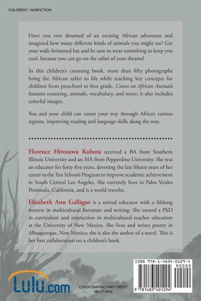 Have you ever dreamed of an exciting African adventure and imagined how many different kinds of animals you might see? Get your wide-brimmed hat and be sure to wear something to keep you cool, because you can go on the safari of your dreams! In this children's counting book, more than fifty photographs bring the African safari to life while teaching key concepts for children from preschool to first grade. Count on African Animals features counting, animals, vocabulary, and more; it also includes colorful images. You and your child can count your way through Africa's various regions, improving reading and language skills along the way.