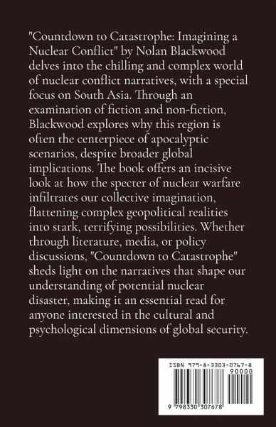 "Countdown to Catastrophe: Imagining a Nuclear Conflict" by Nolan Blackwood delves into the chilling and complex world of nuclear conflict narratives, with a special focus on South Asia. Through an examination of fiction and non-fiction, Blackwood explores why this region is often the centerpiece of apocalyptic scenarios, despite broader global implications. The book offers an incisive look at how the specter of nuclear warfare infiltrates our collective imagination, flattening complex geopolitical realities into stark, terrifying possibilities. Whether through literature, media, or policy discussions, "Countdown to Catastrophe" sheds light on the narratives that shape our understanding of potential nuclear disaster, making it an essential read for anyone interested in the cultural and psychological dimensions of global security.