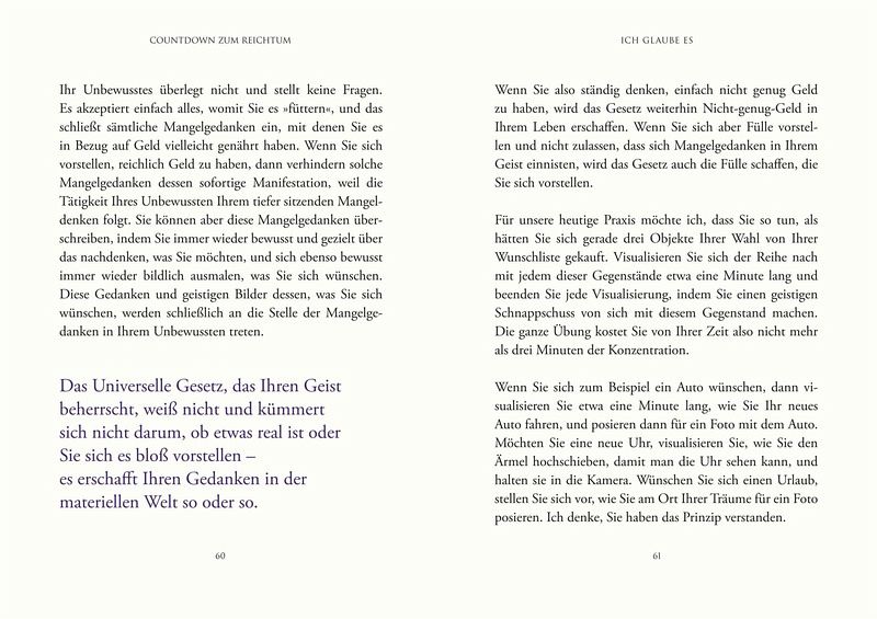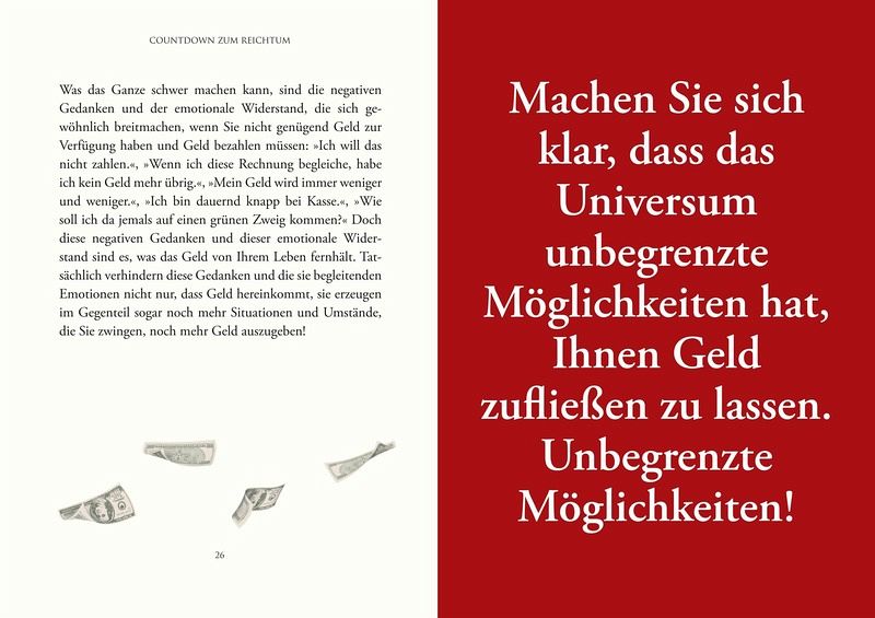 Finanzielle Schwierigkeiten werden durch genau eine Sache verursacht: unsere Gedanken. Um ein reiches Leben zu führen, müssen wir daher nur unseren Verstand richtig nutzen, der uns bisher die überfließende Fülle vorenthalten hat, die in Wahrheit jedem von uns offen steht. Wir dürfen uns endlich von der Mentalität des Mangels befreien.