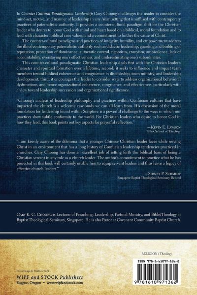 In Counter-Cultural Paradigmatic Leadership Gary Choong challenges the reader to consider the mind-set, motive, and manner of leadership in any Asian setting that is suffused with contemporary practices of paternalistic authority. It provides a counter-cultural paradigm shift for the Christian leader who desires to honor God with mind and heart based on a biblical, moral foundation and to lead with character, biblical core values, and a commitment to further the cause of Christ. The counter-cultural paradigms and practices of integrity, humility, and empowerment address the ills of contemporary paternalistic authority such as didactic leadership, guarding and building of reputation, protection of dominance, autocratic control, nepotism, cronyism, ambivalence, lack of accountability, overstaying one's effectiveness, and underestimating one's subordinates. This counter-cultural paradigmatic Christian leadership deals first with the Christian leader's character and spiritual formation over a lifetime; second, it seeks to influence and impact team members toward biblical coherence and congruence in discipleship, team ministry, and leadership development; third, it encourages the leader to consider ways to address organizational behavioral dysfunctions, and hence organizational coherence, congruence, and effectiveness, particularly with a view toward leadership succession and organizational significance.