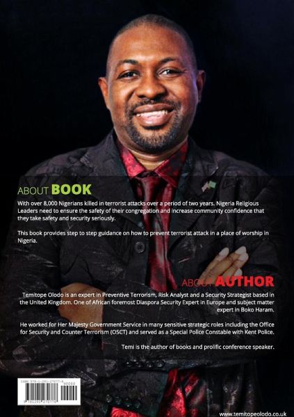With over 10,000 Nigerians killed in terrorist attacks over a period of two years. Nigeria Religious Leaders need to ensure the safety of their congregation and increase community confidence that they take safety and security seriously. This book provides step by step guidance on how to prevent terrorist attack in a place of worship in Nigeria.