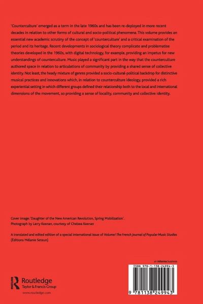'Counterculture' emerged as a term in the late 1960s and has been re-deployed in more recent decades in relation to other forms of cultural and socio-political phenomena. This volume provides an essential new academic scrutiny of the concept of 'counterculture' and a critical examination of the period and its heritage. Recent developments in sociological theory complicate and problematise theories developed in the 1960s, with digital technology, for example, providing an impetus for new understandings of counterculture. Music played a significant part in the way that the counterculture authored space in relation to articulations of community by providing a shared sense of collective identity. Not least, the heady mixture of genres provided a socio-cultural-political backdrop for distinctive musical practices and innovations which, in relation to counterculture ideology, provided a rich experiential setting in which different groups defined their relationship both to the local and international dimensions of the movement, so providing a sense of locality, community and collective identity.