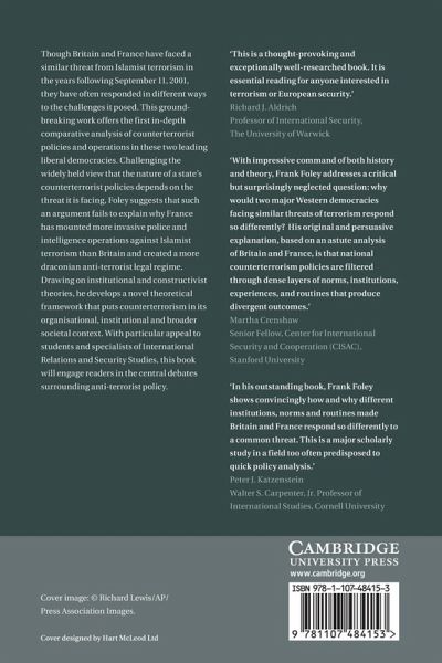 Though Britain and France have faced a similar threat from Islamist terrorism in the years following September 11 2001, they have often responded in different ways to the challenges it posed. This groundbreaking work offers the first in-depth comparative analysis of counterterrorist policies and operations in these two leading liberal democracies. Challenging the widely held view that the nature of a state's counterterrorist policies depends on the threat it is facing, Foley suggests that such an argument fails to explain why France has mounted more invasive police and intelligence operations against Islamist terrorism than Britain and created a more draconian anti-terrorist legal regime. Drawing on institutional and constructivist theories, he develops a novel theoretical framework that puts counterterrorism in its organisational, institutional and broader societal context. With particular appeal to students and specialists of International Relations and Security Studies, this book will engage readers in the central debates surrounding anti-terrorist policy.